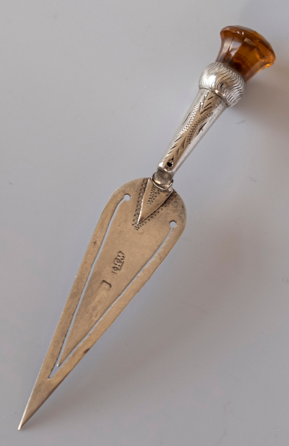 A silver and citrine paste thistle flower with foliage bookmark hallmarked 1901